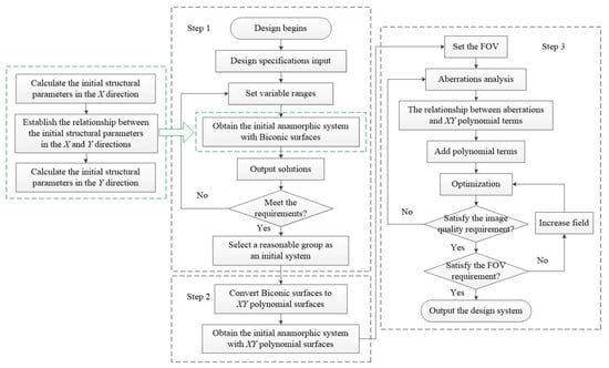 Flow chart of design method of freeform anamorphic systems with ultrawide FOV.