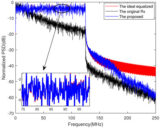PSD performance comparison of the proposed scheme with the ideal case.