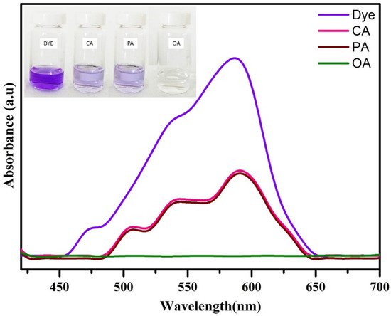 The following supporting information can be downloaded at: https://www.mdpi.com/article/10.3390/photonics9110849/s1, Figure S1: CV dye degradation in the absence of catalyst.