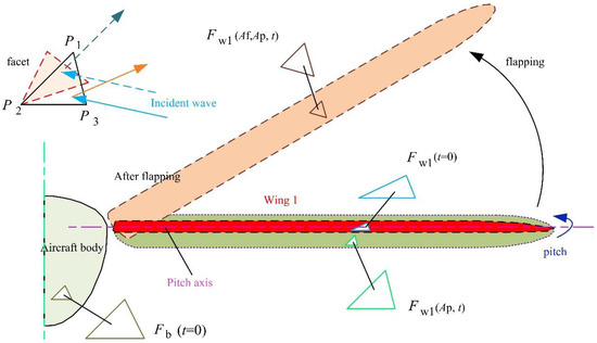 For any facet (Fw1) on the surface of wing 1 when the wing starts pitching or flapping, the deflection effect of the facet on a given radar wave will change as shown in Figure 2, where Fb is the facet on the aircraft body.