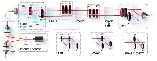 - Bovino, F.A.; Castagnoli, G.; Ekert, A.; Horodecki, P.; Alves, C.M.; Sergienko, A.V. Direct Measurement of Nonlinear Properties of Bipartite Quantum States. Phys. Rev. Lett. 2005, 95, 240407. [Google Scholar] [CrossRef]