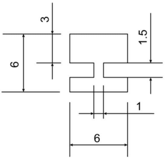To avoid designing additional circuit systems, the iron cantilever resonator is selected as the resonator in the MEMS chamber, and the external electromagnet is used as the driving unit to calibrate the vacuum level in the vacuum chamber. The cantilever resonator parameters in millimeter are shown in Figure 2, and the thickness of iron material is chosen as 0.1 mm.