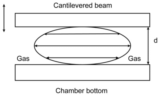 Squeeze-film damping model. The distance between cantilevered beam and chamber bottom is d.
