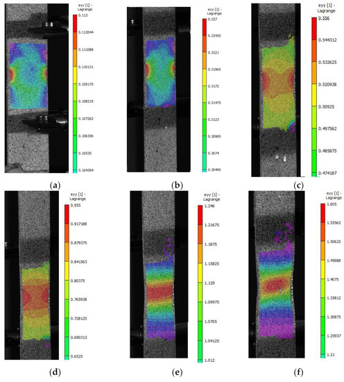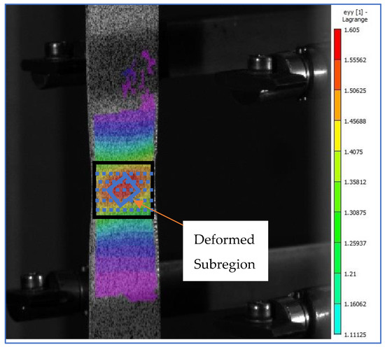 The last 10 years have seen rapid progress in data processing and digital imaging technologies, which has increased interest in optical digital image techniques for strain assessment [8,13,14,17,18,19,20]. Strain fields of different sizes can be measured using the optical digital-image approach. Failure and damage can result from the localization of deformation within the tiny zones of the specimen. As a result, localization effects are crucial for comprehending material failure. To fully appreciate the localization impact, strain measurement and residual stress measurement appear to be crucial. There are several approaches for measuring residual stress, including X-ray diffraction, and the ultrasonic, eddy current, active magnetic, and passive magnetic methods [4,21]. The digital image correlation approach for measuring strain is the main topic of this study. In this study, a local deformation pattern is visualized using the digital image strain measuring approach, which is integrated with DIC. In recent years, DIC has been applied to numerous materials and mechanics research laboratories for full-field strain mapping applications. Theoretically, DIC can attain high accuracy and dependability. In reality, a number of other variables, including the deformation of a speckle on the specimen’s surface, and the fixture method of the image capture instruments, might affect measurement precision during a mechanical test.