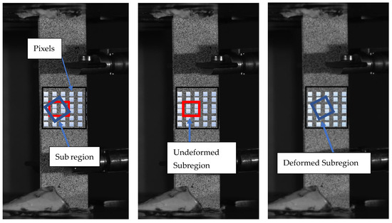 DIC is a non-contact 3D full-field optical method for detecting contours, deformation, vibration, and strain on practically any material. The method is applicable to a wide range of static and dynamic tests, including tensile, torsion, bending, and combination loads. DIC is less costly and simpler than other techniques, such as speckle interferometry, and it is more accurate and subjective than manual measuring methods, offering up a wide range of possible applications. To monitor a group of pixels (called subsets) in the distorted and reference pictures, as shown in Figure 1, DIC measurement uses temporal matching and correlation functions.