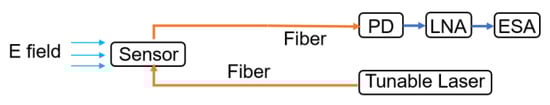 Architecture of the electric field sensing system. PD: photodetector; LNA: low-noise amplifier; ESA: electrical spectrum analyzer.