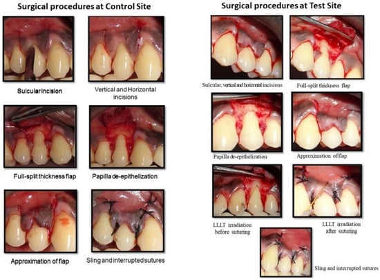 - Yilmaz, E.; Ozcelik, O.; Comert, M.; Ozturan, S.; Seydaoglu, G.; Teughels, W.; Haytac, M.C. Laser-Assisted Laterally Positioned Flap Operation: A Randomized Controlled Clinical Trial. Photomed. Laser Surg. 2014, 32, 67–74. [Google Scholar] [CrossRef] [PubMed]