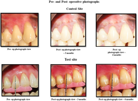 Post-operative photographs at the control and test sites.