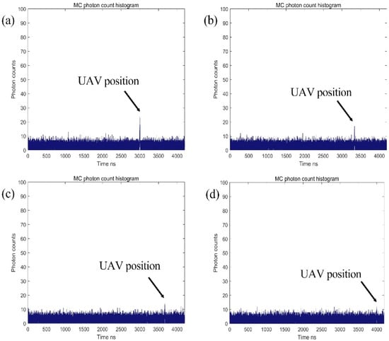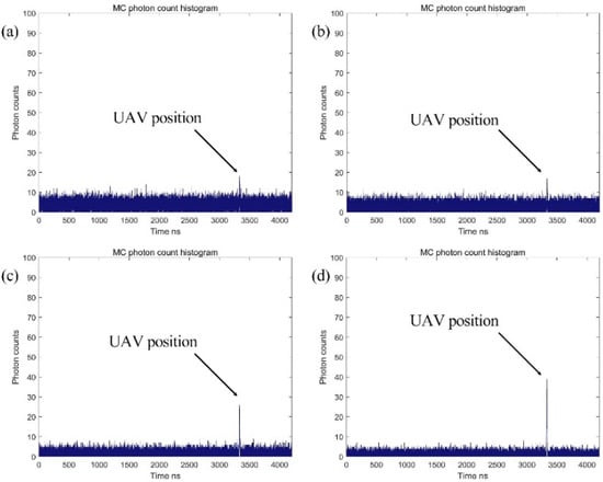 - Spectral response of filters: The absorptive BPF used in the experimental measurement does not entirely filter out the corresponding wavelength in the visible region, so the value of background attenuation outside this passband is different and ultimately results in a difference between the received photon and the simulation. It is also worth noting that we avoided the time of noon, so the background noise in the actual experiment was less than in the simulation.