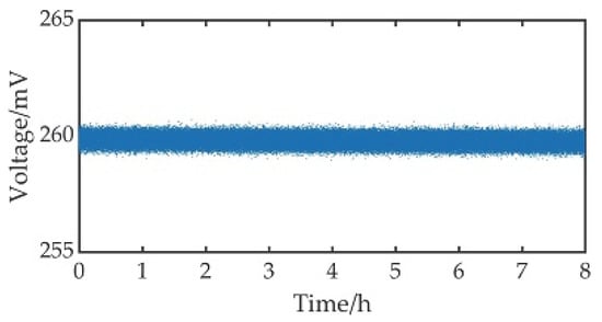 The measurement time for both experiments was 8 h. The experiments were set up with a gaze imaging of 5 min. The output voltage of PD when the luminous intensity of the light source was stable was selected for data processing. The relative uncertainty of the PD stability in Experiment 1 was the relative measurement uncertainty of this experiment. To ensure the accuracy of the measurement results, the stability of the calibration light source was repeatedly measured three times. The average value of the relative uncertainty was taken as the final measurement result.
