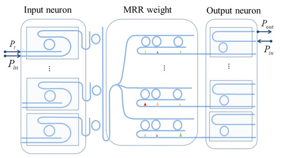 The MRR based architecture provides potential approaches to the realization and application of large-scale neural networks because it is not only CMOS-compatible but has internal WDM properties and small footprints.