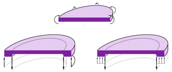 where the rigidity express and laplacian ∇2z = 4 from Equation (1). The shearing force depends on each cases hereafter. Three VTDs associated to external loads are able to generate, actively, the curvature mode Cv-1. Each of them requires a particular shearing force.