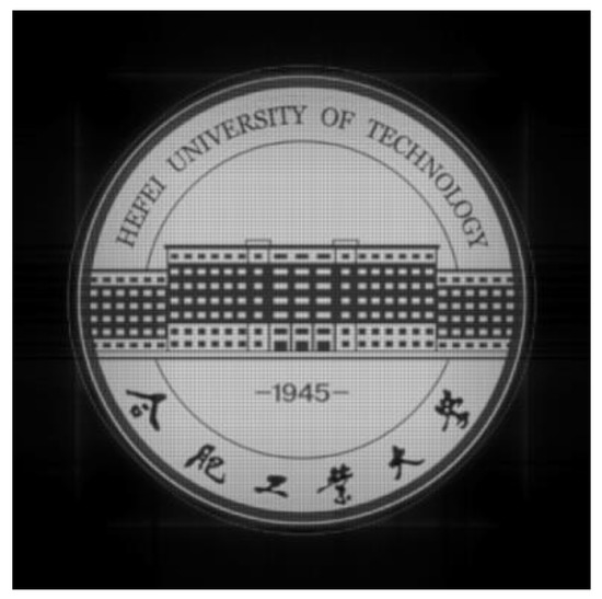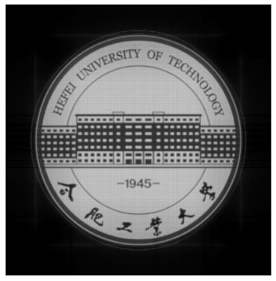 Then, the numerical simulation of the visible pixels method was performed. The eye movement range was set as 4 mm and pupil size was set as 2 mm. From Equation (3), only 3 × 3 pixels needed to be calculated. Figure 7 shows the reconstructed image of the proposed method using visible pixels. It can be seen that the quality of the images of the proposed method using visible pixels was almost the same as the original method, but the calculation speed was greatly improved. The generation time was 337 ms, which meant the calculation speed was increased by about 6.2 times. The PSNR and SSIM between the original image and the reconstructed image of conventional pinhole type HS were 17.06 and 0.5575, respectively. The PSNR and SSIM between the original image and the reconstructed image of the proposed visible pixle method were 15.9 and 0.5328, respectively. This proves that the proposed visible pixels method can effectively accelerate the calculation speed of CGH without too much image quality degeneration.
