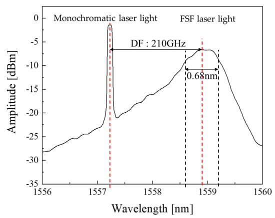 where B is the half-width of the spectrum of the FSF laser [24]. In this study, the half-width of the FSF laser was approximately 84 GHz, as shown in Figure 3, which means that the distance resolution was approximately 1.8 mm.