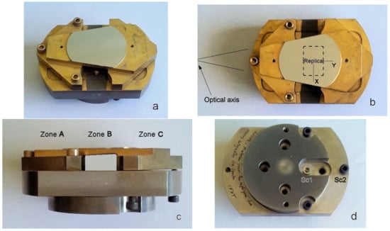 The asphericity amount of the off-axis replicas is determined from the Schmidt plate—and its central wavelength refractive index—as an equivalent correction transferred to the replica mirror shape. Of course, due to the replication process, the matrix and replica have opposite shapes.