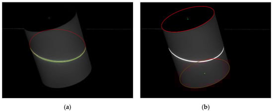 After the RSCP extraction, a minimum enveloping rectangular of the light stripe masks the current image to prevent the light stripe from affecting subsequent image processing. The second content is to detect the EPCT, and its purpose is ellipse detection. There are several conventional methods for ellipse detection, e.g., Hough transform [29] and edge-following [30] methods. Unfortunately, they have shortcomings of being less robust or more time-consuming. Therefore, a novel ellipse-detection method, which is called the RALS method [31], is introduced. The RALS method consists of two main steps: