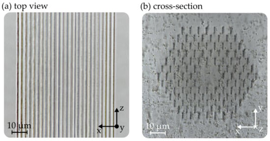 - Roth, G.-L.; Rung, S.; Esen, C.; Hellmann, R. Microchannels inside bulk PMMA generated by femtosecond laser using adaptive beam shaping. Opt. Express 2020, 28, 5801–5811. [Google Scholar] [CrossRef]