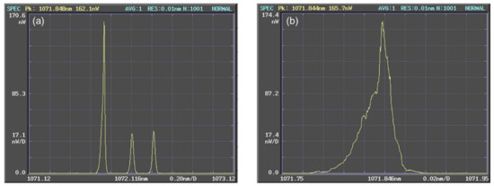 - Mine, S.; Kawase, K.; Murate, K. High-Power ASE-Free Fast Wavelength-Switchable External Cavity Diode Laser. Appl. Opt. 2021, 60, 1953–1957. [Google Scholar] [CrossRef]