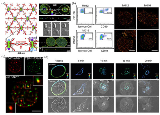 - Pan, L.; Yan, R.; Li, W.; Xu, K. Super-resolution microscopy reveals the native ultrastructure of the erythrocyte cytoskeleton. Cell Rep. 2018, 22, 1151–1158. [Google Scholar] [CrossRef] [Green Version]