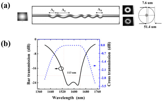 - Zhao, H.; Zhang, Z.; Zhang, M.; Hao, Y.; Wang, P.; Li, H.; Zhang, Z.; Zhang, M.; Hao, Y.; Wang, P.; et al. Broadband flat-top second-order OAM mode converter based on a phase-modulated helical long-period fiber grating. Opt. Exp. 2021, 29, 29518–29526. [Google Scholar] [CrossRef] [PubMed]