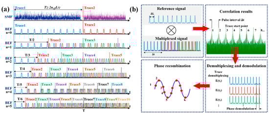 Time slot multiplexing scheme []: (a) principle; (b) demodulation algorithm.