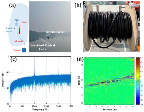 - Chen, J.F.; Li, H.; Liu, T.; Fan, C.Z.; Yan, Z.J.; Sun, Q.Z. Fully distributed hydroacoustic sensing based on lightweight optical cable assisted with scattering enhanced fiber. In Proceedings of the Optical Fiber Communication Conference (OFC), Washington, DC, USA, 6–11 June 2021; p. W7C.3. [Google Scholar] [CrossRef]
