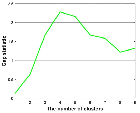 In order to determine the value of K, this paper confirms it by employing the gap statistic method [43]. Although the elbow method [19] is usually adopted to determine K, the elbow method needs to find the inflection point manually and lacks enough automaticity. Therefore, the gap statistical method is adopted in this paper as follows: