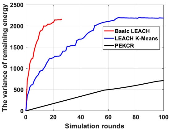 The variance of remaining energy vs. different transmission rounds.