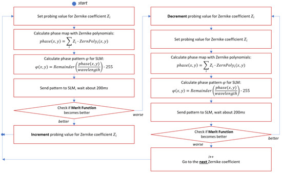 The flow map of the algorithm that we used for laser beam focusing by means of SLM is presented in Figure 6.