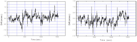 Drift of the star image center along X axis (left) and Y axis (right).