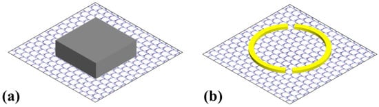 Graphene is a kind of two-dimensional (2D) single-layer carbon atoms exhibiting special properties [22,23]. Graphene materials can be used as an excellent platform for metamaterial and provide strong confinement. Graphene plasmons, different from the surface plasmon polarities generated by gold and copper, exhibit low loss optical properties [24]. Furthermore, the Fermi energy and the related charge carrier density can be engineered through electrical gating and doping. Higher carrier mobility (above 10,000 cm2/(Vs)) has been obtained when graphene is grown by chemical vapor deposition (CVD) [25]. In addition, the mobility over 200,000 cm2/(Vs) has been achieved in the experiment by using suspended monolayer graphene [26]. Recent research demonstrates that by manufacturing the graphene layer on hexagonal Boron nitride (h-BN) substrate, the carrier mobility can reach 300,000 cm2/(Vs) at low temperature [27].