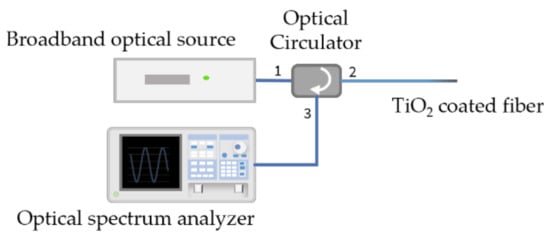 - Hirsch, M. Optical properties of thin TiO2 film deposited on the fiber optic sensor head. In Proceedings of the Photonics Applications in Astronomy, Communications, Industry, and High Energy Physics Experiments 2017, Wilga, Poland, 29 May–4 June 2017; p. 10445. [Google Scholar]
