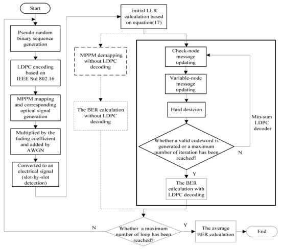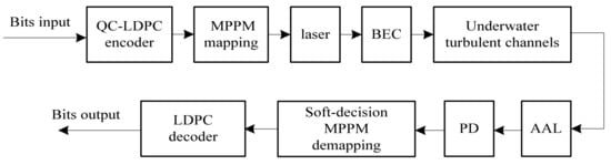 Jiang, H.; He, N.; Liao, X.; Popoola, W.; Rajbhandari, S. The BER Performance of the LDPC-Coded MPPM over Turbulence UWOC Channels. Photonics 2022, 9, 349. https://doi.org/10.3390/photonics9050349