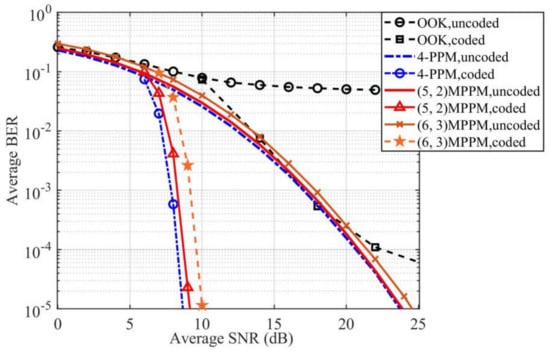 - Xu, F.; Khalighi, M.-A.; Bourennane, S. Coded PPM and Multipulse PPM and Iterative Detection for Free-Space Optical Links. J. Opt. Commun. Netw. 2009, 1, 404–415. [Google Scholar] [CrossRef]
