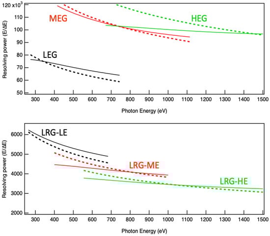 The three configurations of the LRG are called, without surprise, LRG-HE (HE standing for High Energy), LRG-ME, and LRG-LE (with ME being the Medium Energy one and LE the Low Energy). The parameters of the gratings are reported in Table 1.