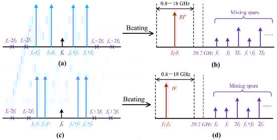 - Qiao, Y.; Li, H.; Hu, X.; Gong, C.; Sun, K.; Wei, Y. Microwave Photonic Sub-harmonic Downconverter with Image Rejection Capability. In Proceedings of the 2019 IEEE 4th Optoelectronics Global Conference (OGC), Shenzhen, China, 3–6 September 2019; pp. 40–44. [Google Scholar] [CrossRef]