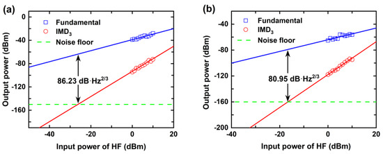 - Jiang, W.; Zhao, S.; Tan, Q.; Li, X.; Liang, D.; Range, D. Wideband microwave photonic downconverter with low phase noise and improved spurious-free. In Proceedings of the 2017 International Topical Meeting on Microwave Photonics (MWP), Beijing, China, 23–26 October 2017; pp. 1–4. [Google Scholar] [CrossRef]
