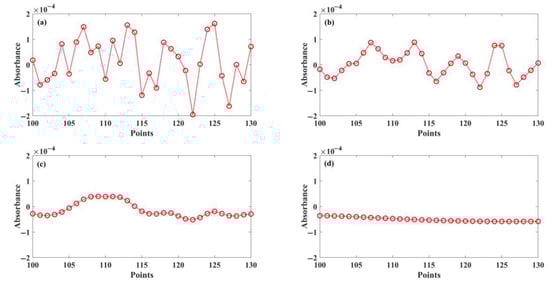The data used for the test algorithm are four groups of normalizing original spectra of 1 ppm CH4. The collected original spectra are shown in Figure 5.