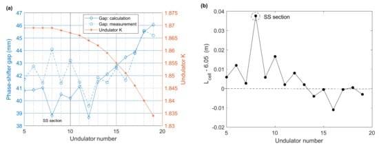 Upon acknowledging the unknown calculation error of the phase-shifter gap from Equation (7), we have to choose the appropriate phase number for the photon energy scan to let the calculation error be within the tolerance range.