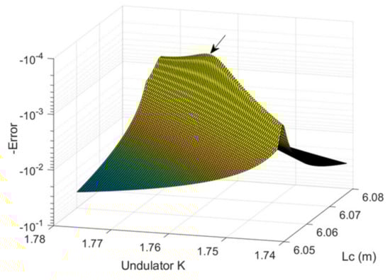 Upon acknowledging the unknown calculation error of the phase-shifter gap from Equation (7), we have to choose the appropriate phase number for the photon energy scan to let the calculation error be within the tolerance range. From