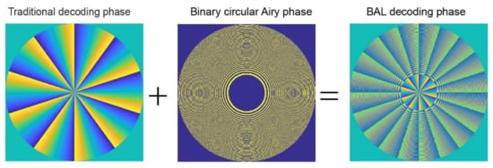 Based on the abruptly autofocusing beams, we develop a binarized phase lens and apply it to the OAM holography; then, the reconstruction distance and intensity are made adjustable. The rest of the paper is organized as follows. The theoretical explanation of flexible decoding is presented in Section 2. A decoding experiment is presented in Section 3, and the paper is summarized in Section 4.