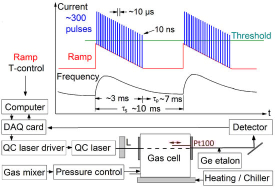 - Herklotz, F.; Rubin, T.; Sinnreich, M.; Helmke, A.; von Haimberger, T.; Heyne, K. Fast Simultaneous CO2 Gas Temperature and Concentration Measurements by Quantum Cascade Laser Absorption Spectroscopy. Appl. Sci. 2022, 12, 5057. [Google Scholar] [CrossRef]