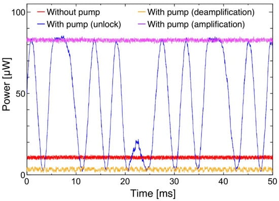 Locking the relative phase between the pump light and the seed light at 0 and π, which corresponds to the amplification and deamplification, respectively.