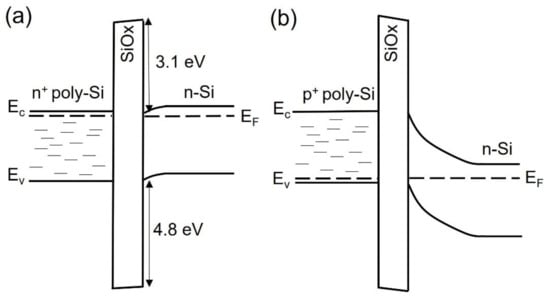 - Allen, T.G.; Bullock, J.; Yang, X.; Javey, A.; De Wolf, S. Passivating contacts for crystalline silicon solar cells. Nat. Energy 2019, 4, 914–928. [Google Scholar] [CrossRef]