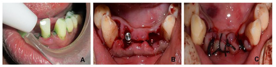 (A) Photodynamic therapy; (B) implants placed after extraction; (C) sutures placed.