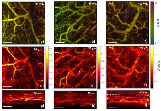 Perekatova, V.; Kirillin, M.; Nemirova, S.; Orlova, A.; Kurnikov, A.; Khilov, A.; Pavlova, K.; Kazakov, V.; Vildanov, V.; Turchin, I.; et al. Quantitative Characterization of Age-Related Changes in Peripheral Vessels of a Human Palm Using Raster-Scan Optoacoustic Angiography. Photonics 2022, 9, 482. https://doi.org/10.3390/photonics9070482