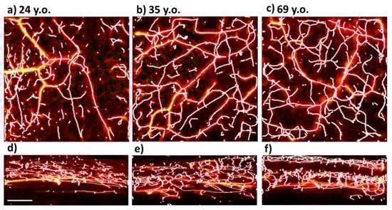 - Kajiya, K.; Kim, Y.K.; Kinemura, Y.; Kishimoto, J.; Chung, J.H. Structural alterations of the cutaneous vasculature in aged and in photoaged human skin in vivo. J. Dermatol. Sci. 2011, 61, 206–208. [Google Scholar] [CrossRef]