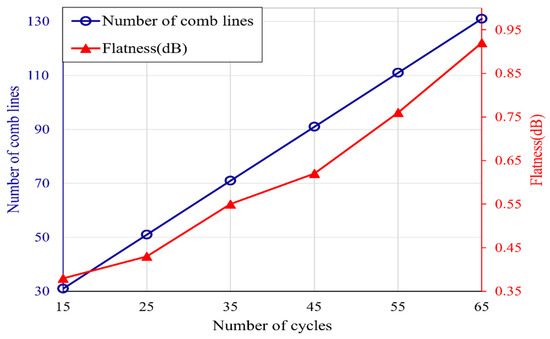 The number of comb lines and flatness of the generated OFC under different cycles.