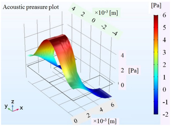Acoustic pressure distribution corresponding to the first longitudinal state in a miniaturized acoustic cell.