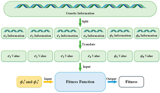 - Crossover: When parent 1 crosses with parent 2, a random mask code of equal length with the chromosome’s genotype is generated. When a bit in the mask code is one, the corresponding bit of the child chromosome will inherit the information of that bit in parent 1; when a bit in the mask code is zero, the corresponding bit of the child chromosome will inherit the information of that bit in parent 2.